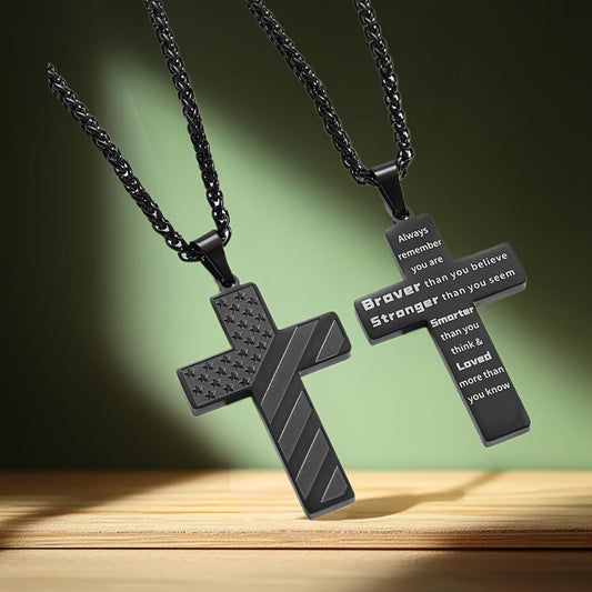 High-End Hip Hop Titanium Steel Necklace with Cross and American Flag Cross High-End Hip Hop Titanium Steel Necklace with Cross and American Flag Pendant,20.0Inch Stainless Steel Bracelet。Bible Verse Cross Necklace Men's Gift